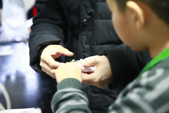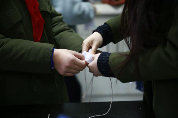 在活动过程中,在志愿者的热情帮助下,附校同学们充分发挥了自己的想象力,用绳和线作为画笔,在布上挥毫泼墨。现场的氛围十分热烈,同学们也渐入佳境,“大东华”和“小东华”之间也建立了更紧密的联系。