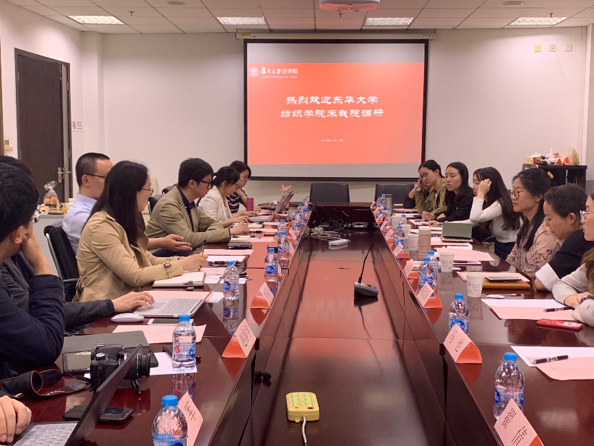 2019年4月25日,91club 党委副书记刘雯玮、学生工作办公室主任袁海源及专职辅导员一行11人赴复旦大学法学院调研学生工作,座谈会在复旦大学江湾校区廖凯原法学楼202室举办。