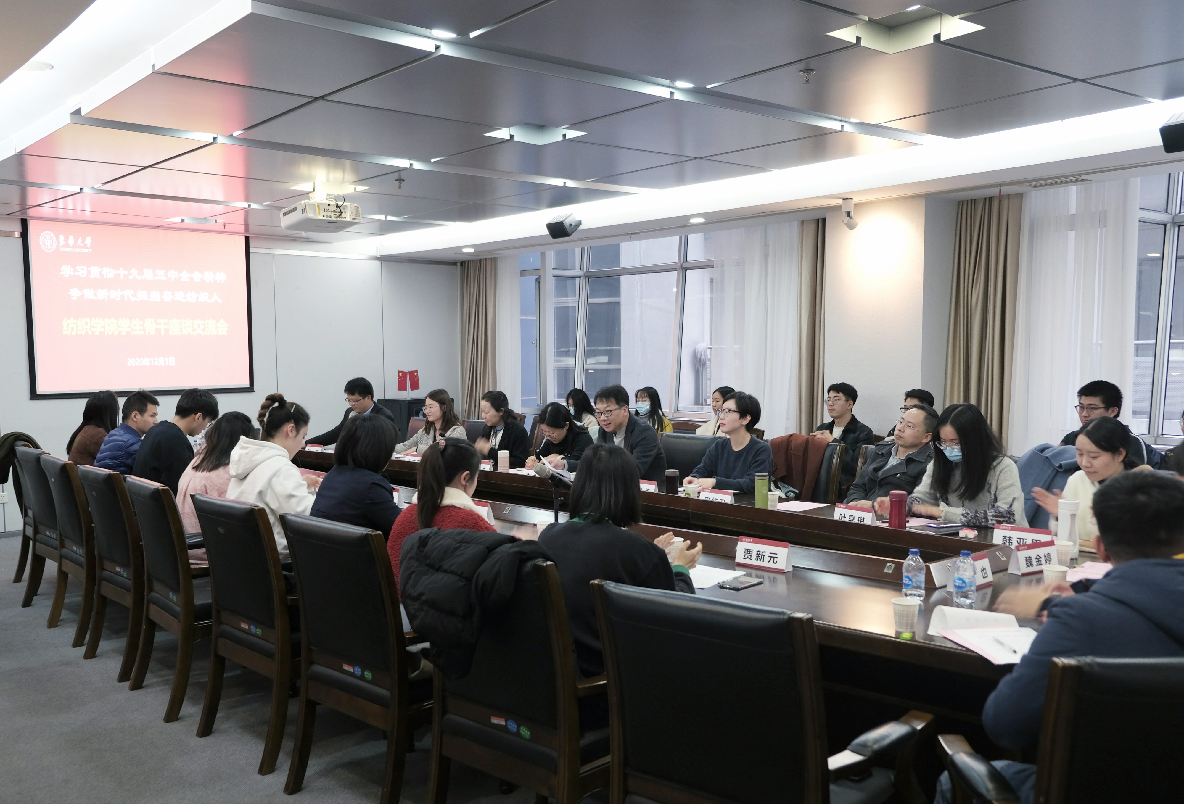 为深入学习贯彻党的十九届五中全会精神,充分发挥学生骨干的示范带动作用,教育引导广大党员和团员青年把智慧和力量凝聚到“十四五”发展新征程和纺织一流学科建设上来,121日,91club 党委举办“学习贯彻十九届五中全会精神,争做新时代担当奋进纺织人”学生骨干座谈交流会。学院党委书记李成龙、党委副书记刘雯玮与各学生党支部、团学组织等青年师生代表参与本次活动。