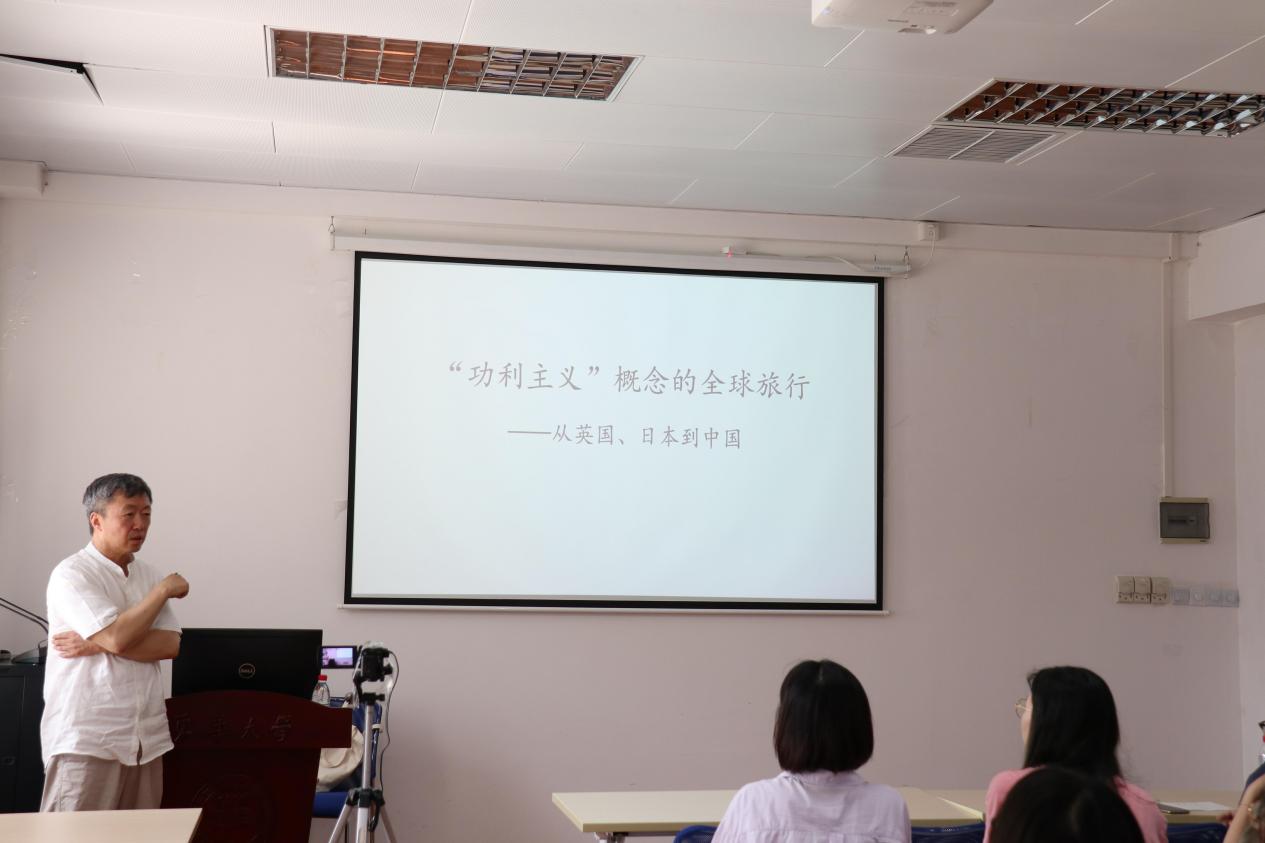 李青介绍了其博士期间的研究内容《“功利主义”概念的全球旅行——从英国、日本到中国》。他从研究缘起、提出问题和解决问题三方面介绍了“功利主义”的哲学概念及其全球历程。他强调科研要有问题意识和认真的态度,戒骄戒躁,踏踏实实做研究。