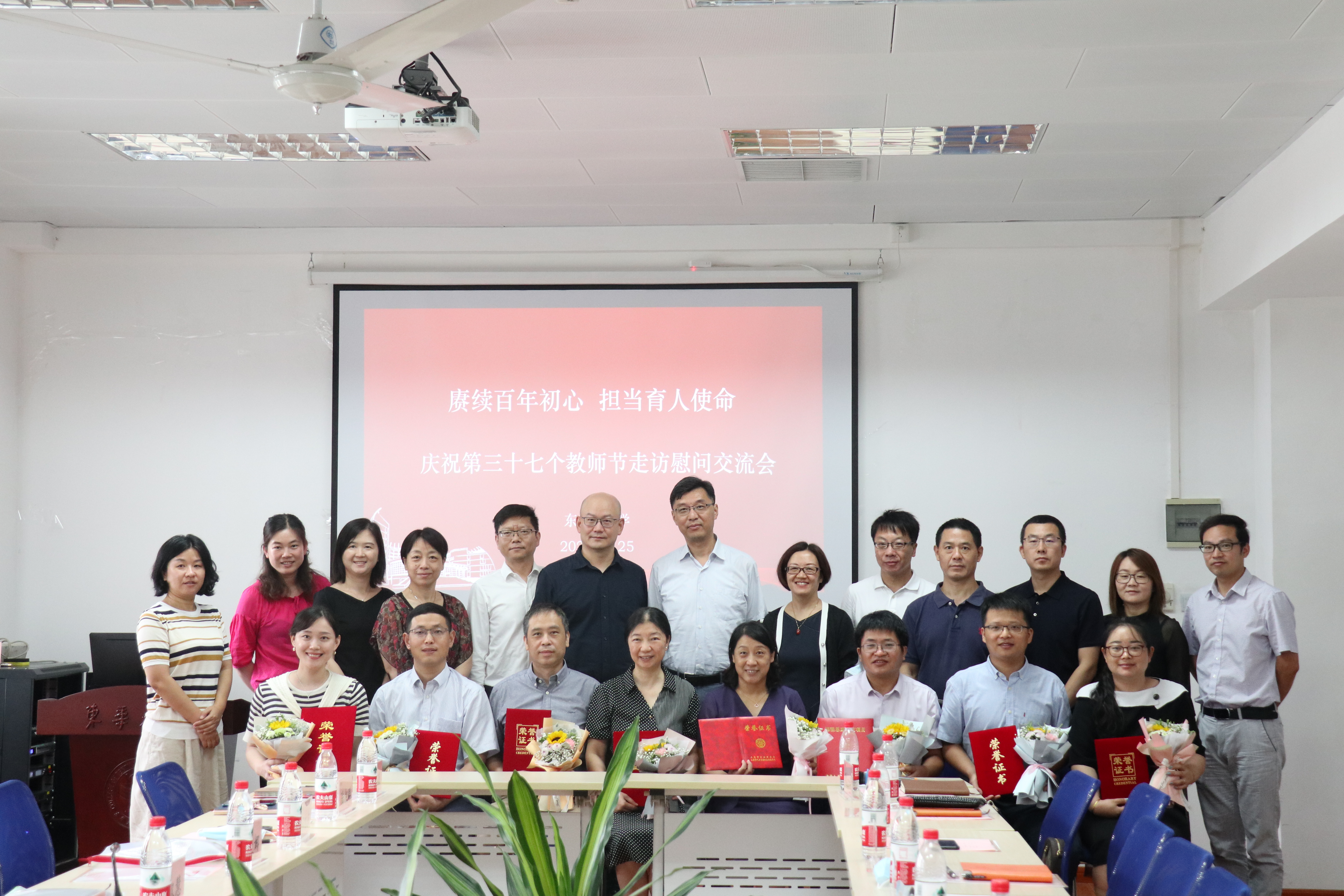 近日,在第三十七个教师节即将到来之际,学校以“赓续百年初心 担当育人使命”为主题,结合师德专题教育和党史学习教育“我为群众办实事”,开展教师节慰问座谈活动。党委书记刘承功前往91club ,走访慰问教师代表,并与一线教师亲切座谈交流,向全体教职工致以节日问候和诚挚敬意。党委副书记刘淑慧,相关学院部处负责人共同参加。