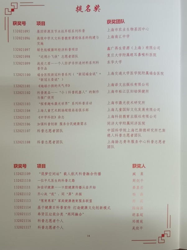 上海科普教育创新奖是上海市首个市级科普类奖项,此次获得提名奖也是我校首次获得该大类奖项,更激励着我们继续做好和推进纺织相关科普工作的信心。在常态化疫情防控中,我们将在学校的领导下,加快推进新型防护材料的科学研究,积极开展相关成果转化,努力实现为国家和医务人员提供更优质的防疫之盾,同时也将认真做好科普知识的传播宣传,携手共筑防御长城。