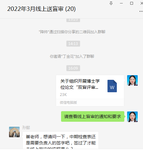 在线送审,确保博士学位论文“双盲评审”顺利完成。根据学校要求,转为准封闭管理后,在保证学位论文质量的前提下,学院即启动博士学位论文“双盲评审”在线送审工作,在线登记和提交双盲材料,按照要求程序进行送审,确保博士按时毕业,不受疫情影响。