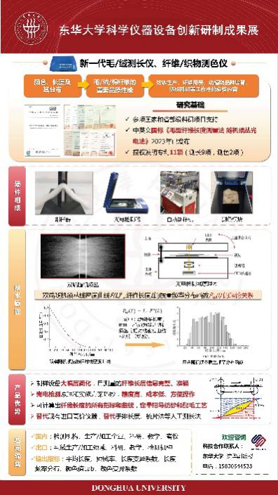 沈华副教授团队发明了一种全新的纤维长度测量法——双端随机须丛光电法,其特征是采用双端随机须丛试样与CCD光电传感技术检测透光图像并计算纤维长度分布,相关成果已成功应用于毛绒纤维检测领域。团队发明的测色法不需要昂贵的分光元器件,测色效果与国际一流仪器等价,并增加了对混色纤维至关重要的颜色变异性指标等。申请团队此前已推导出一整套关键理论,攻克纤维长度测试中消除纤维颜色和卷曲影响的关键技术,并研发出仪器制造所需的11项授权发明专利技术,成功研制出包括自动制样机在内的毛绒纤维长度检测成套设备。团队牵头制定毛绒纤维测长国家标准GBT 42486-2023 以及国家标准外文版W20191224,发表学术论文70余篇,成果不仅提升了中国纤维原料质量的科学检测水平,而且带动中国原创设备技术的快速成长。