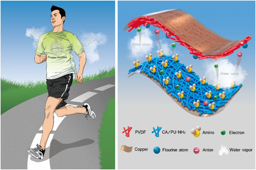 Nowadays thenumber of wearable electronics is largely increasing and theircommercialization market is substantially expanding, which shows great potential in the wide fields of medical treatment, health monitoring, sports fitness, communication and entertainment. However,the limited power supply of commonly used batteries largely restricted the further applications of wearable electronics andit causes unfavorable inconvenience to terminal customers. Triboelectric nanogenerator (TENG) is based on the coupling effect of triboelectrification and electrostatic induction, which can effectively provide continuous and stable green energy for wearable electronics by harvestingbiomechanical energy from individual people in daily life.However, duringhuman biomechanical movement, it is inevitable to produce plenty of sweat,especially during strenuous exercise or in hot weather, which would largely increase humidityaround human body. As a result, it leads to surface charge dissipation of triboelectric material andsignificantly decreasesthe power output of TENG, which will greatly reduce its practical application.To overcome those limitations, developing a TENG withhumidity resisting properties will be a superior solution to ensurethe stable andsustainable operation of the self-powered wearable electronics.